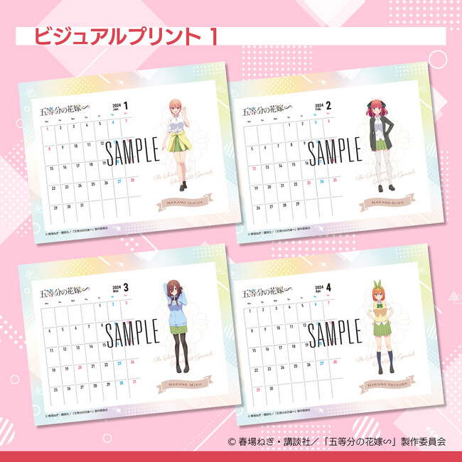 TVスペシャルアニメ「五等分の花嫁∽」の名場面から選んだ2パターンのカレンダーをご用意しました。