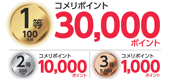 期間中、コメリアプリからのエントリーと、コメリカード、アクアカード、コッコPayにて、クレジット払いまたはプリペイド払いをしていただくと、お買上げ金額累計税込1万円を1口としてご応募いただけます。