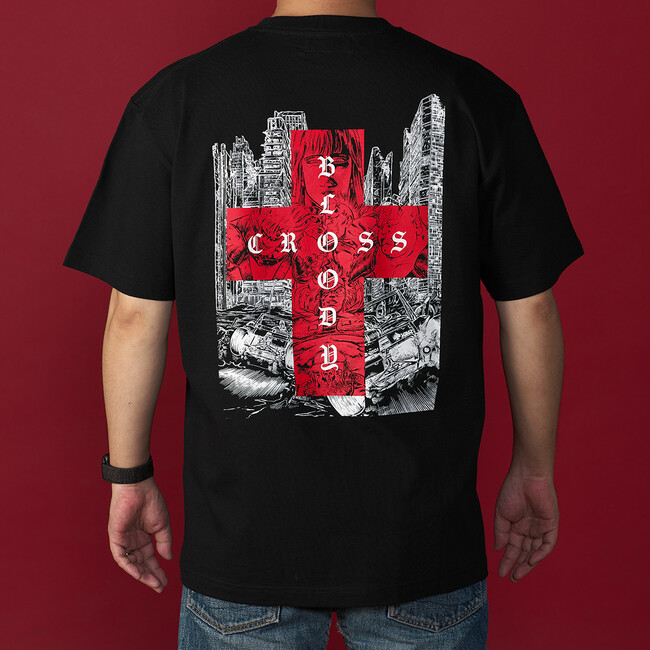 KING軍の南十字星を象った十字の紋章「ブラッディクロス」。フロントにもバックにも印象的なプリントを施した存在感抜群のアイテムだ。