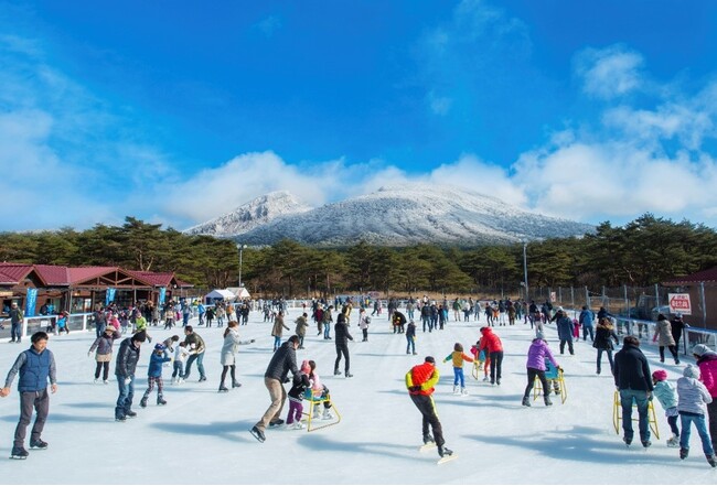 雪化粧の韓国岳をバックに、風を感じながらスケートを楽しみませんか。