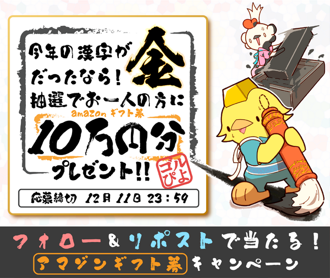 今年の漢字を大予想!!もし“金”が選ばれたら抽選で1名様に10万円分のAmazonギフト券プレゼントキャンペーン!!!