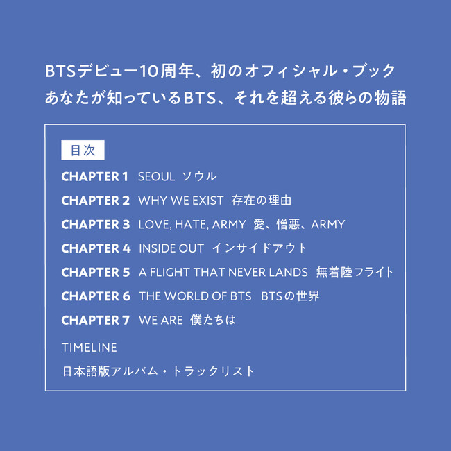 〇「アルバムリリースおよびコンサート、受賞歴、参加イベントなどBTSの主な経歴」をまとめた「TIMELINE」収録