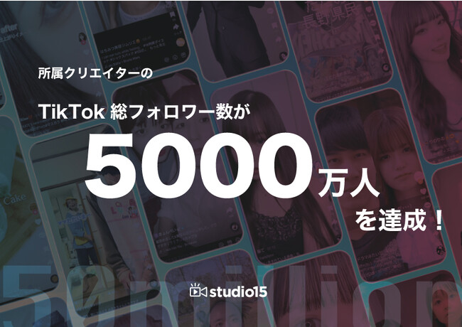 TikTokを中心としたショートムービー(短尺動画)領域で広告代理店事業・プロダクション事業を展開するstudio15株式会社(本社:東京都渋谷区、代表取締役:岩佐 琢磨、以下studio15)は、所属クリエイターのTikTokでの総フォロワー数が合計5000万人を超えたことを発表します。