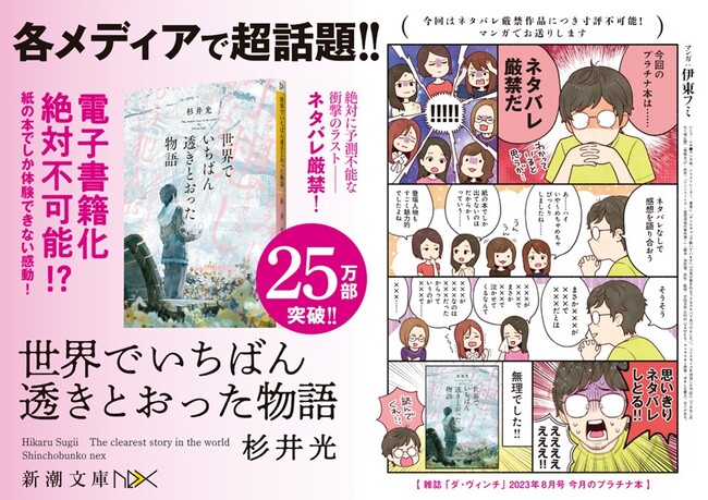 【「このミス」文庫で唯一のTOP10入り!!】「ネタバレ厳禁」で超話題! 2023年最注目作品『世界でいちばん透きとおった物語』(杉井光/著、新潮文庫nex)がミステリランキング軒並みランクイン!