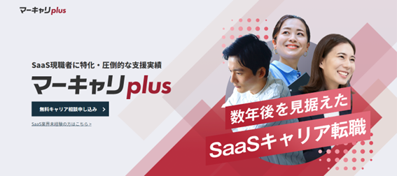 「マーキャリPLUS」は、現職SaaSワーカーのための業界内キャリアアップ転職支援に特化した転職サービスです。年収や役職、職種やスキル、ワークスタイルやカルチャーなど、あなたが求める条件と今後のビジョンを踏まえ、数年後を見据えたキャリアデザインとその実現に向けたベストな転職を支援します。