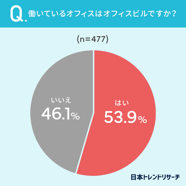 53.9%と半数以上の方が「オフィスビルに勤めている」と回答しました。
