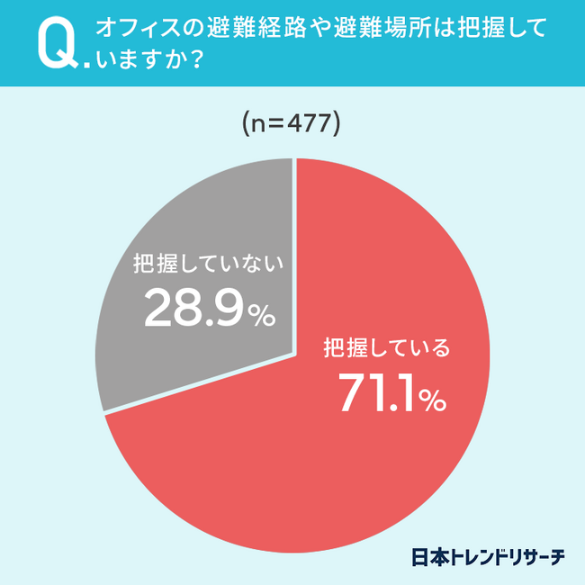 【避難経路把握してる?】オフィスで働く71.1%が、避難経路や避難場所を「把握している」