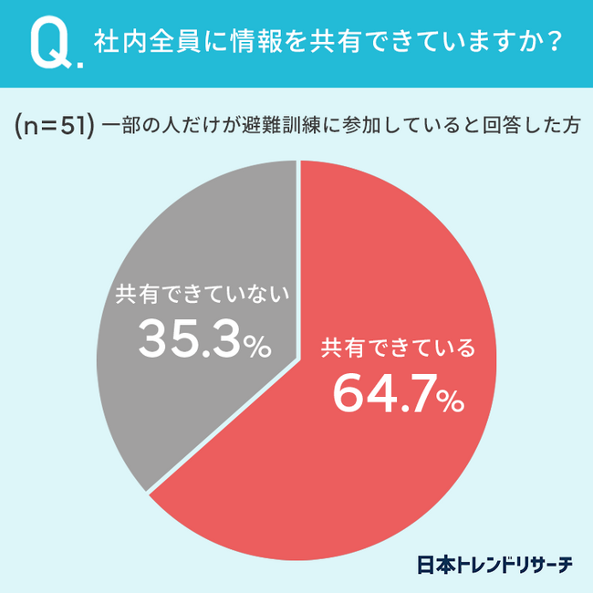 質問6:一部の人だけが避難訓練に参加している場合は、社内全員に情報を共有できていますか?