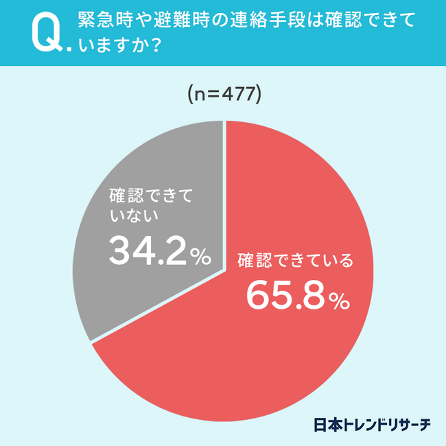 ■65.8%が、緊急時や避難時の連絡手段を「確認できている」