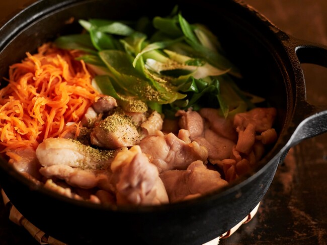 (鶏)ねぎだれでから揚げ、手羽先の煮こごり、鶏皮&しょうがの串焼き、鶏レバーペースト、京都スパイスのタンドリー串焼き、鶏すき、鴨すき、おつまみグラタン