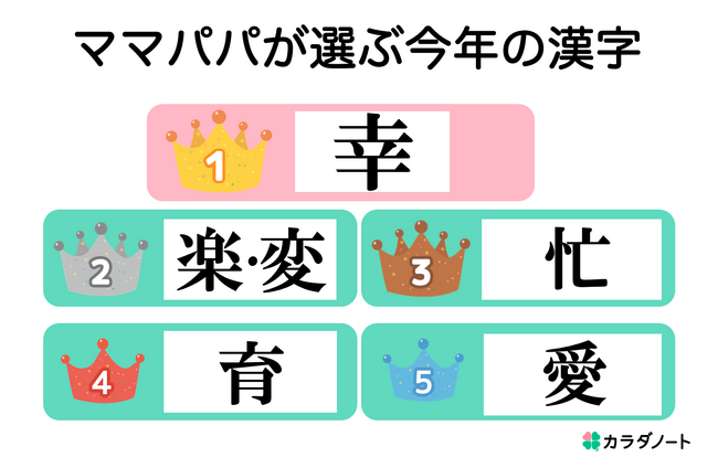 ■ 2023年の「ママパパが選ぶ今年の漢字ランキング」TOP5は「幸」「楽・変」「忙」「育」「愛」