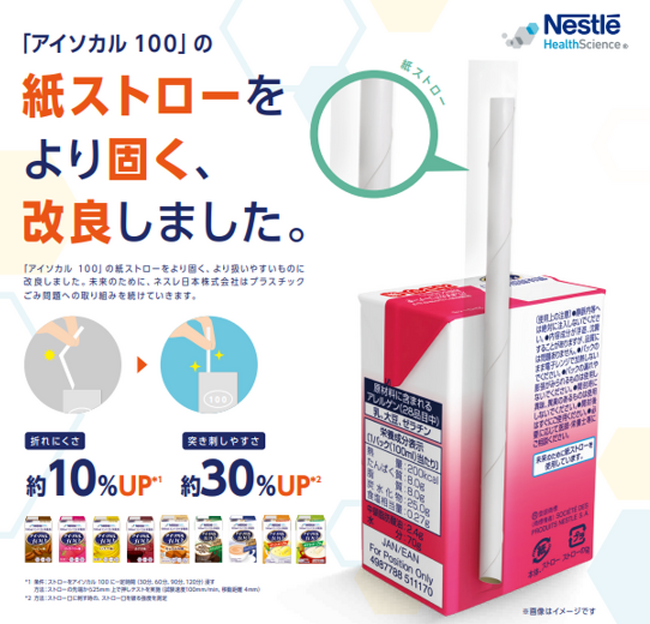 ネスレ ヘルスサイエンス 栄養補助飲料「アイソカル 100」の紙ストローが進化!