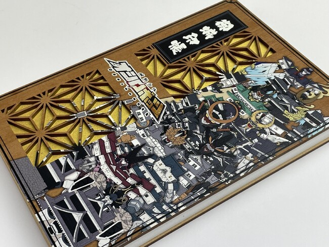 木製表紙にUVインクジェット・カラー印刷を施し、切り抜き加工を加え1点1点を仕上げています。本紙は一般的に御朱印帳に使用されている奉書紙を使用しています。