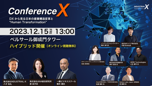 デジタルトランスフォーメーション(DX※1)推進を行う、株式会社INDUSTRIAL-X(本社:東京都港区、代表取締役CEO:八子 知礼、以下当社)は、12月15日(金)にDXの先にある “産業の未来” を描き、発信するカンファレンスイベント「Conference X in 東京 2023」を開催することをお知らせします。