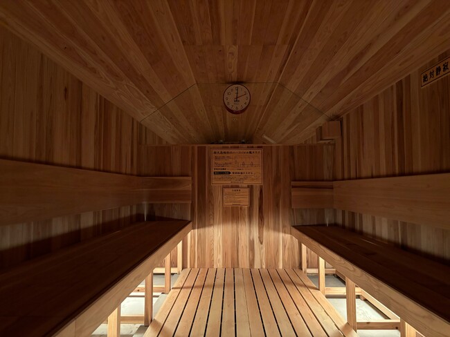 サウナ室には、リラックス効果のあるα-セドロールを多く含む屋久島地杉を使用し、BGMにはグレゴリオ聖歌で使用されていた「心の安定」「ストレス緩和」が期待できるフェジオ周波数の174HZをベースとしたオリジナルBGMを使用し、サウナそのものを楽しみ深いリラックス状態になることのできる空間になっています。