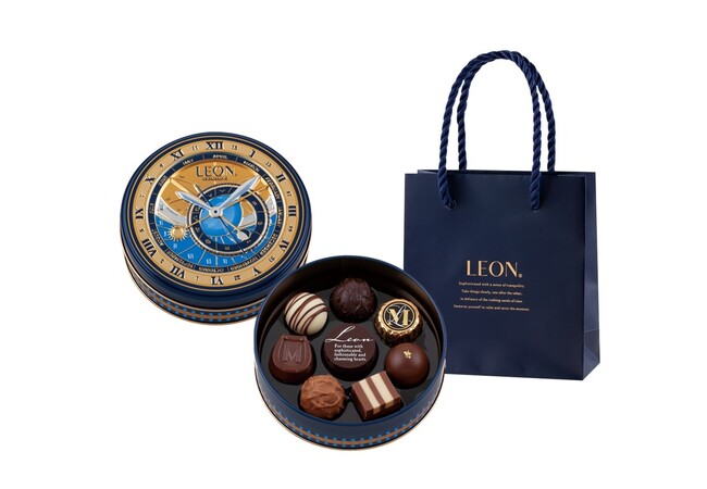 星の動きや緯度などを把握するための天文機器“アストロラーベ”をイメージした新しい時計デザインへ。風味豊かなトリュフや幸運をもたらすとも言われる馬蹄型など、8つのチョコレートを詰め合わせたレオンシリーズで一番人気のアイテムです。