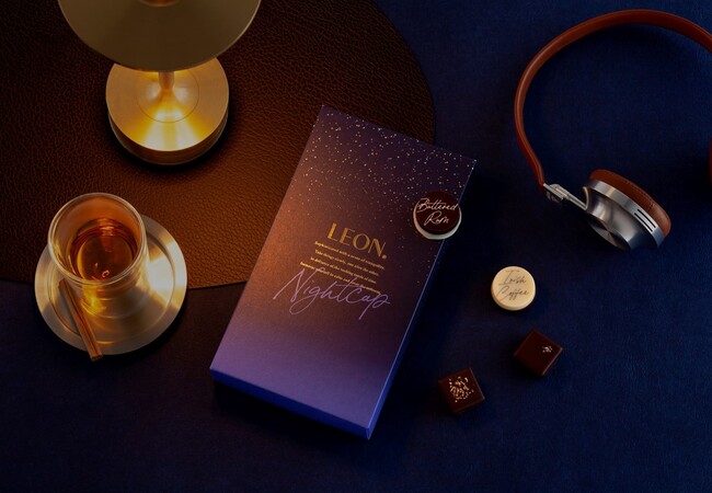 就寝前に飲むお酒「ナイトキャップカクテル」。欧米では寝つきをよくするために眠る前にお酒を嗜む文化があります。新商品「ナイトキャップ」は、そんな深い夜に、ゆったりした気分で時間をかけて味わっていただく、新しいチョコレート。レオンの世界観に寄り添い、大人の雰囲気漂う“夜のシーン”をご提案いたします。