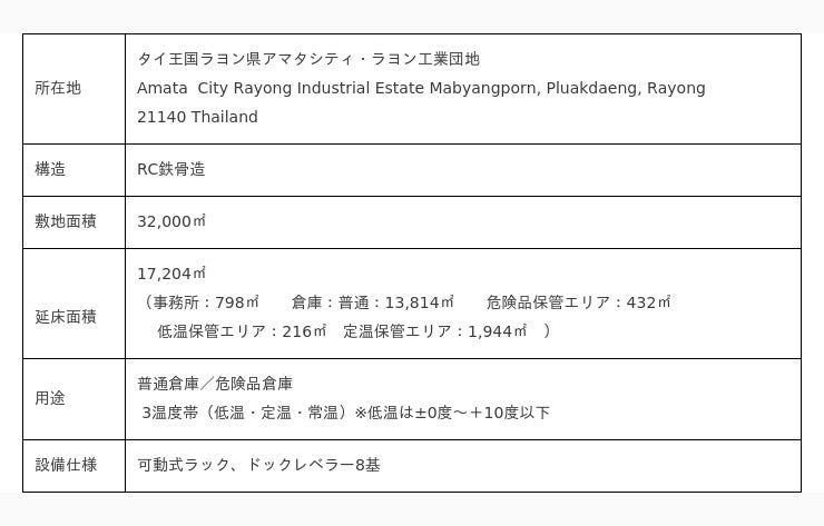 タイに新物流センターが竣工(アマタシティ・ラヨン工業団地)