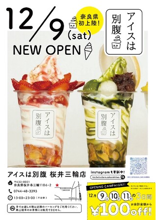 奈良初出店!1日最高780個販売“夜パフェ専門店”「アイスは別腹 桜井三輪店」12/9(土) グランドオープン