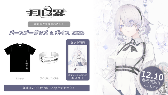 本日・12月10日に誕生日を迎えた月白累のバースデーグッズの詳細を公開するとともに、公式オンラインショップ「VEE Official Shop」にて受注販売を開始しました。