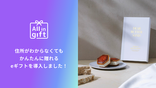 「All in gift」が、「世界のベストレストラン50」入賞実績のある川手寛康シェフプロデュースのプレミアスイーツ「DEAR BUTTER SAND」のオンラインショップにて採用