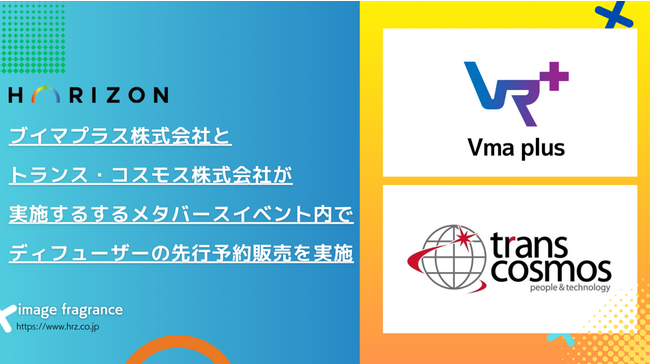 Horizon株式会社(東京都港区:代表取締役:ニイエンツゥオ ツァイ以下「ホライズン」)は、Vma plus株式会社主催、トランスコスモス株式会社が企画運営を支援するメタバースイベント「メタ・ワールドフェス2023冬」(2023年12月12日 (火)13:00 ~12月19日(火)12:00)内でスマートディフューザーの先行予約販売を実施します。同時に、「ライブ配信で1億円稼いだ」ことでも知られるタレントの福岡みなみさん監修の香りも販売し、新しい香り体験を提供します。