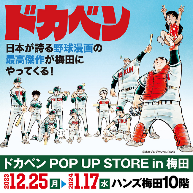 マンガ、アニメ、特撮などを始めとするサブカルチャーをテーマとした企画展を開催・運営している株式会社クレイジーバンプは12月25日(月)~2024年1月17日(水)の期間でハンズ梅田店にて開催する【ドカベンPOP UP STORE in 梅田】の情報を公開致します。