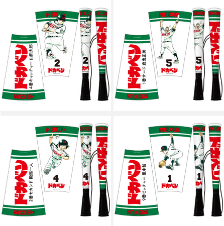 球場での応援グッズの大定番!応援メガホンバットが登場!プロ野球チーム公式グッズのように、選手モデルとして明訓四天王がプリントされた4商品がラインナップ!プロ野球編ではパ・リーグに所属した4選手を思い出して、是非実際の球場観戦時にご使用ください!