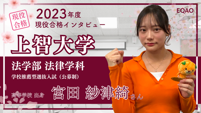 - 【上智大学公募推薦】上智大学文学部新聞学科特別専門コース リリース決定!上智大学新聞学科目指すなら、講師の8割が現役上智大生のEQAO一択!新聞学科公募推薦入試合格者の約4人に1人がEQAOの塾生!01/04 11:45