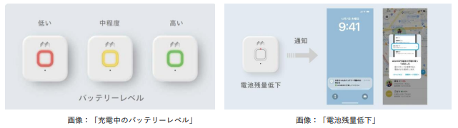 ・電池残量低下を、端末LEDと保護者のスマホへの通知で両方にお知らせ【★NEW★】