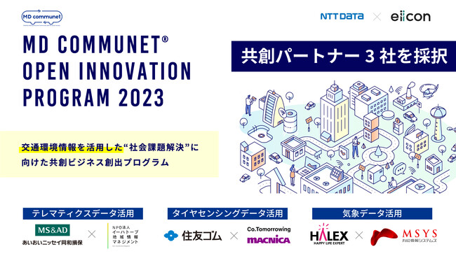 【NTTデータ×eiicon】『MD communet(R) OPEN INNOVATION PROGRAM 2023』中核企業 あいおいニッセイ同和損保、住友ゴム工業、ハレックスが共創パートナー3社採択