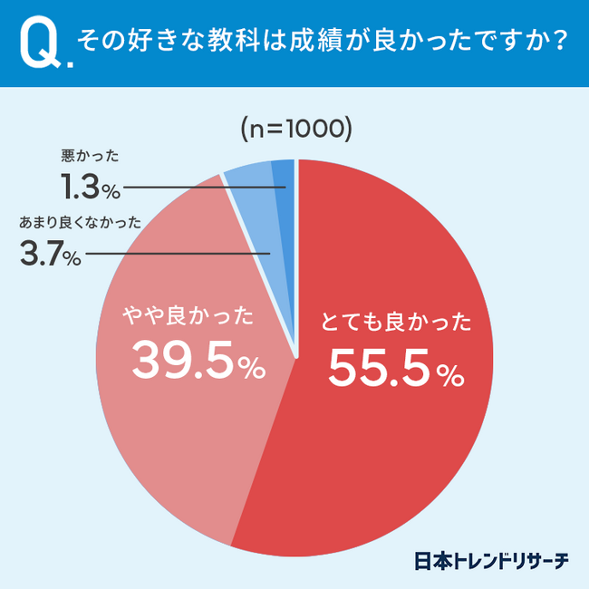 続いて、その好きな教科は成績が良かったか調査してみました。