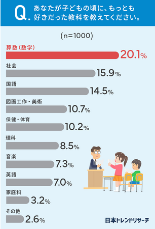 日本トレンドリサーチ(運営会社:株式会社NEXER)は、太宰府アカデミーと共同で「子どもの頃好きだった・嫌いだった教科」に関するアンケートを実施し、結果をサイト内にて公開したので紹介します。