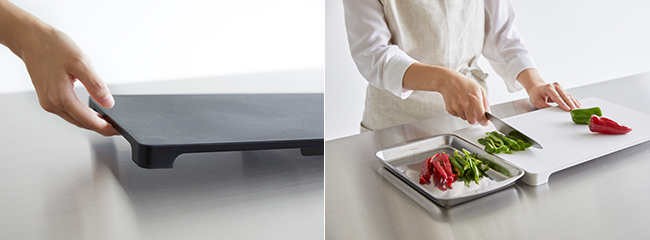 高さがあるので、切った野菜などをトレーに直接滑らせて移すことができます。