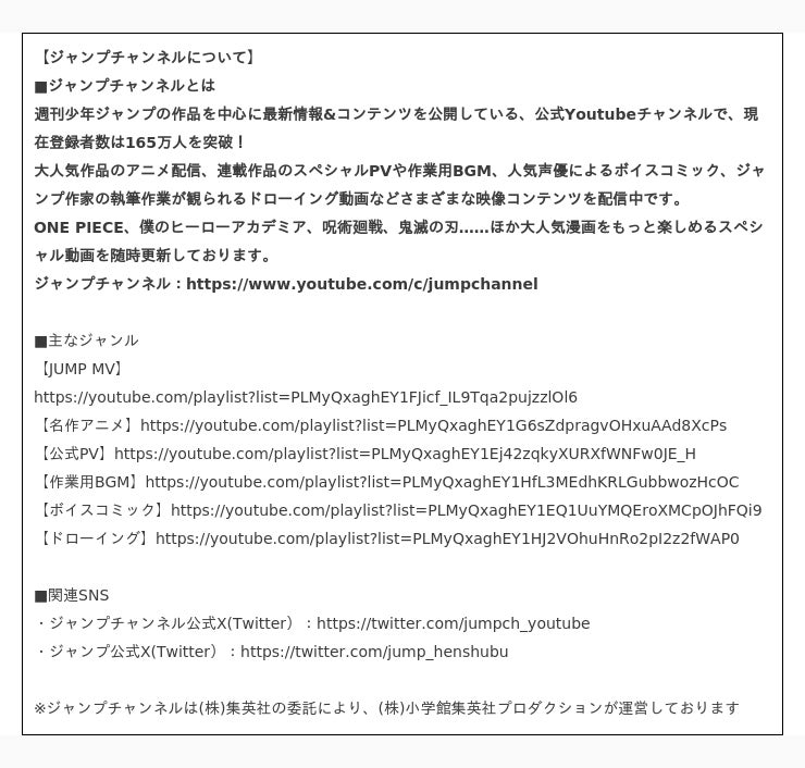 ・ジャンプチャンネル公式X(Twitter):https://twitter.com/jumpch_youtube