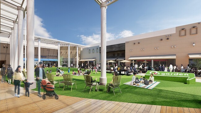 2024年7月に、4階飲食フロアの屋外空間「ガーデンエリア」が「Q’s Garden(キューズガーデン)」へ生まれ変わり、エリアにおいて希少な「つどい、くつろげる庭」として、皆様に憩いの場を提供します。「Q’s Garden」では、新設する人工芝や築山でリラックスできるほか、テラス席で食事を楽しめるなど、子どもから大人まで、快適に、思い思いに過ごすことができます。さらに、オープン後は様々なイベントの開催を予定しており、地域全体の「つどい」の場を提供します。