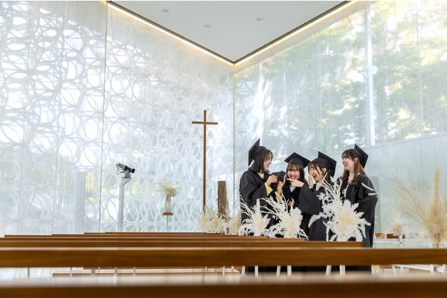 ◆ 美しく神聖な世界感漂うチャペル「エタニティ」にて角帽・アカデミックガウンを身に着けて、自分たちだけの卒業式