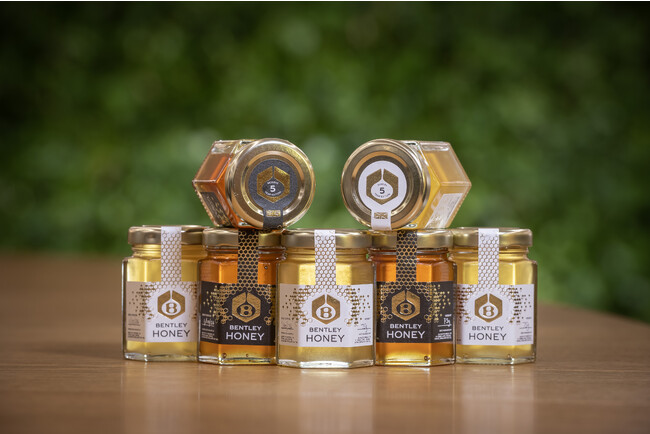 食欲をそそるブラック エディション ラベルだけでなく、残りの15の巣箱からも1,000瓶の美味しい通常のハチミツが採取されました。ベントレー社内のデザインチームは、このユニークなラベルをデザインし両方の瓶をリブランディングすることで、この5周年を祝うのに協力しました。