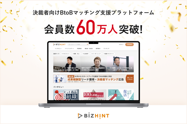クラウド活用と生産性向上の専門サイト「BizHint」、会員数60万人を突破