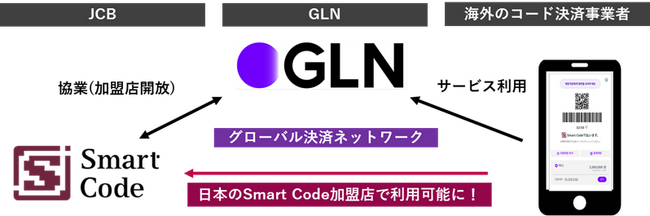 このような状況への対応として、JCBはGLNと協業し、同社の決済ネットワークがSmart Code対応することで、海外のコード決済事業者が日本のSmart Code加盟店で利用できるようにします。