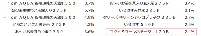 「From AQUA白湯」の購入者が、アキュアの自販機でその他どのような商品を購入しているのかを調査しました。