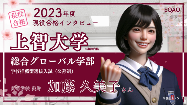 - 【公募推薦】上智英文学科専門コースリリース決定! 上智大学文学部英文学科に推薦入試で合格目指すならEQAO一択!講師の8割が現役上智大生の上智に特化した総合型選抜専門塾EQAOが全力サポートします!01/04 11:45