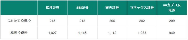 ※当社調べ、オンライン証券大手 5 社(当社、SBI 証券、au カブコム証券、マネックス証券、楽天証券)と比較。つみたて投資枠は2023 年12月11日時点、成長投資枠は2023 年12月7日時点。
