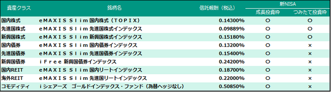 ※表内「新NISA制度の対応状況」の〇×につきましては制度上の取り扱い可否となります。また、信託報酬の記載は2023年12月15日現在のものになります。
