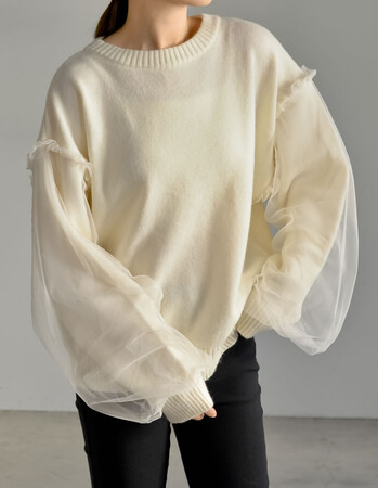 アルパカタッチボリューム袖チュールニットプルオーバー