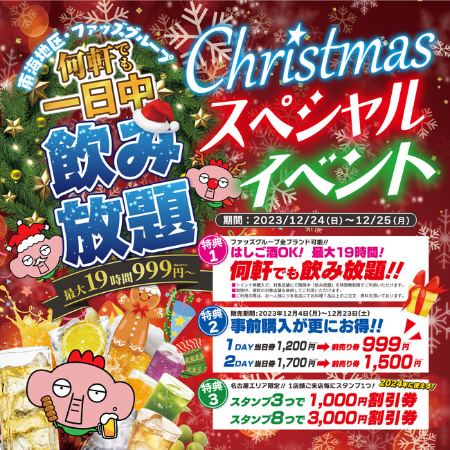 【新時代のクリスマス】何軒でも、最大19時間飲み放題999円~!東海地方最大級のイベント開催