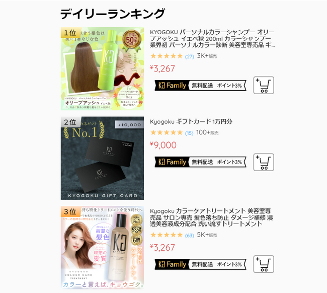 更に、新しく「デイリーランキング」も導入し、実際にリピートの多い商品や人気の商品をリアルタイムで公開できるようになりました。