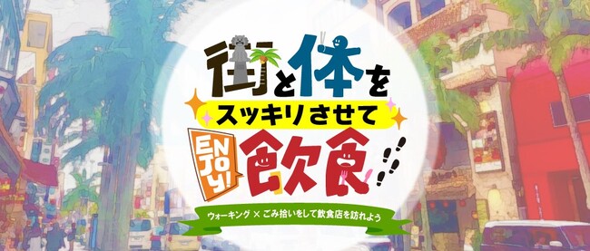「街と体をスッキリさせてEnjoy!飲食」は、海洋ごみとして流出する可能性がある、海岸に近い繁華街や商業施設周辺のごみをウォーキングを兼ねて拾うことで、街をスッキリ・体と心もスッキリさせると共に、清掃後に周辺にある協力店舗で飲食を楽しんでもらうイベントです。