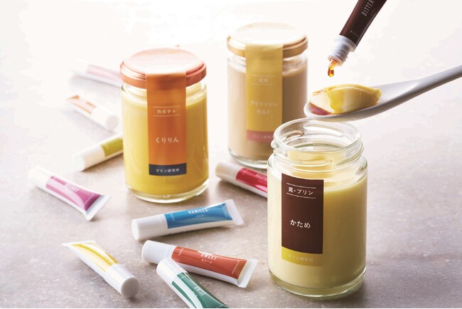 ※各プリン1つにつき、12種のソース(カラメル、エキゾチックフルーツ、ラム酒、ラベンダー、ほか)の中から2種選べます。