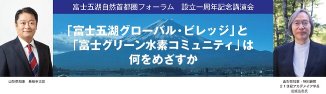 21世紀の新たな社会ビジョンを掲げ、様々な社会実験を行うフォーラムは、設立一周年を記念し、このフォーラムの活動から生まれた新たな2つの国際コンソーシアム、「富士五湖グローバル・ビレッジ」と「富士グリーン水素コミュニティ」について発表します。
